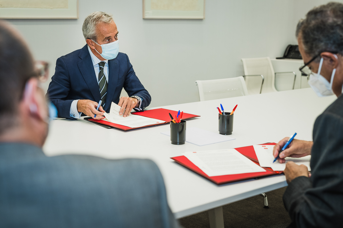 The SIGAUS Environmental Classroom continues to grow and the new 2020-2021 academic year has begun with a new partnership, this time with the public administration. The authority in question is the Regional Ministry of Education and Youth of the Community of Madrid, whose Minister, Enrique Ossorio, met with the General Manager of SIGAUS, Eduardo de Lecea, on 18 September to sign a new Agreement that renders a further boost to this training project, launched by SIGAUS in 2015, with the aim of providing training in waste management to future professionals in the production sectors that require lubricants for their operation, such as car production, mechanical manufacturing, and various other engineering specialties, among others.