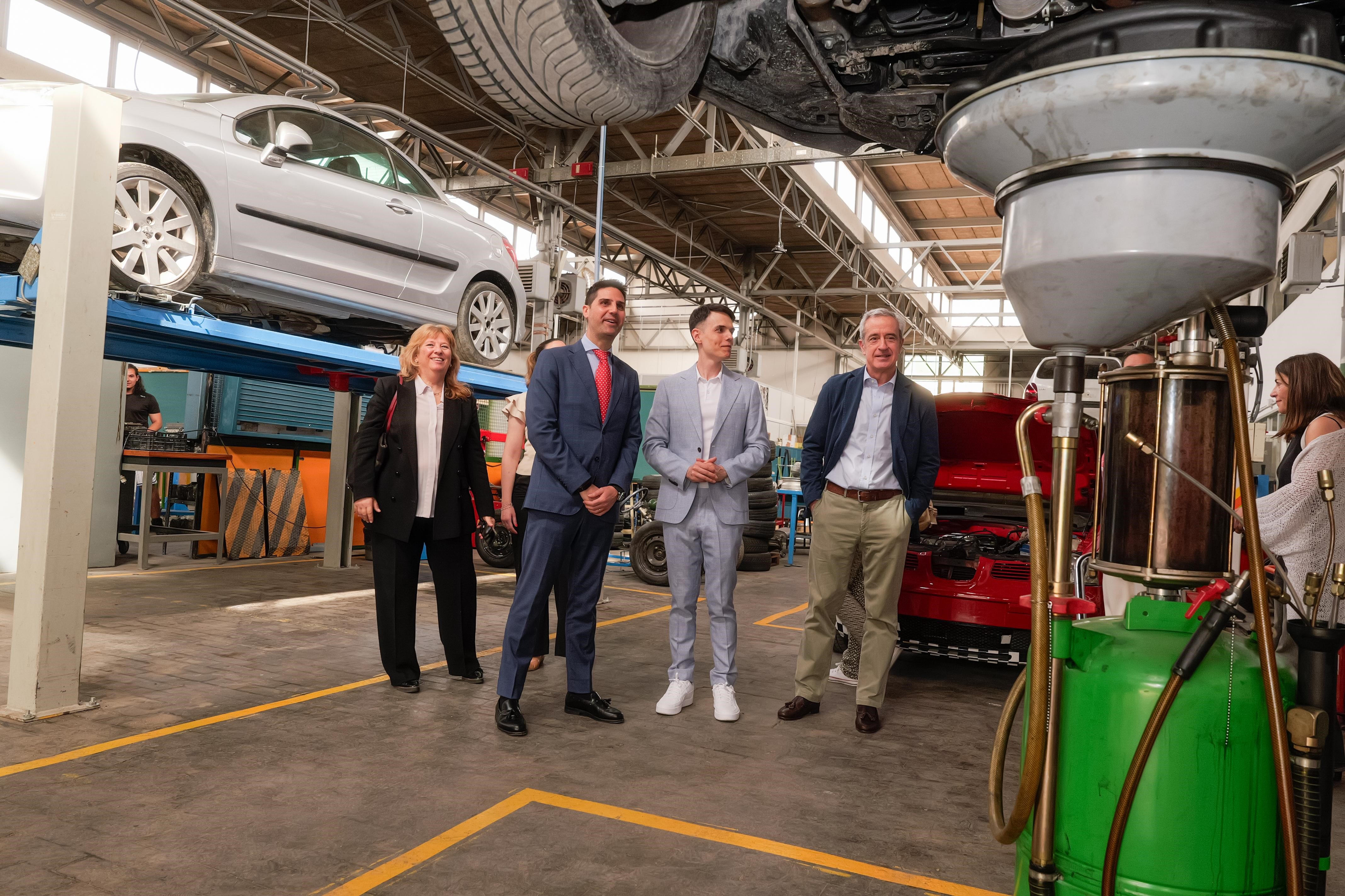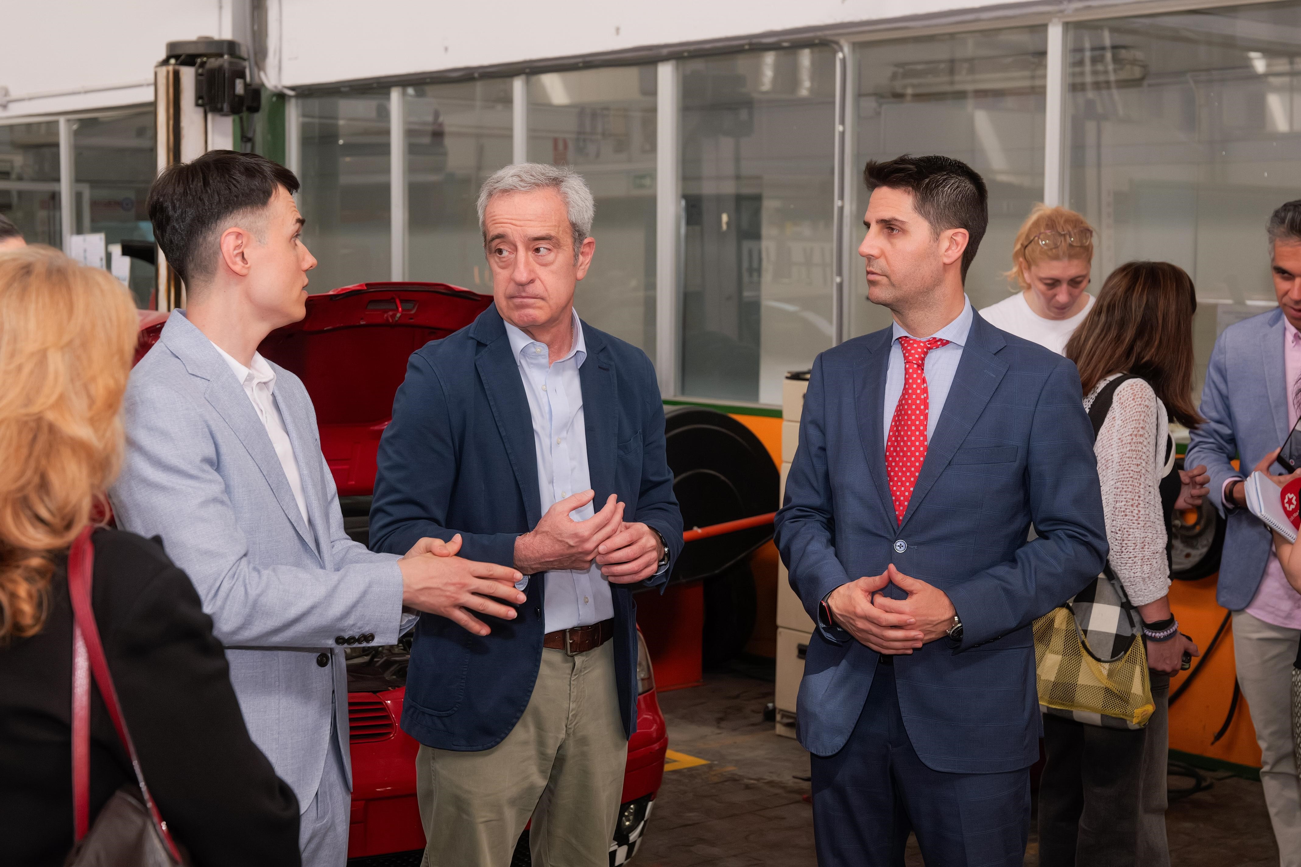 The IES San Blas leadership team presented the school’s facilities, including the area where students carry out oil changes, diagnosis and painting of vehicles, and the space dedicated to waste storage, where waste is classified according to its type and prepared for subsequent collection by an authorised waste manager. Afterwards, they visited the centre's ‘Self-Sustainable Classroom’, which has two wind turbines and solar panels.
