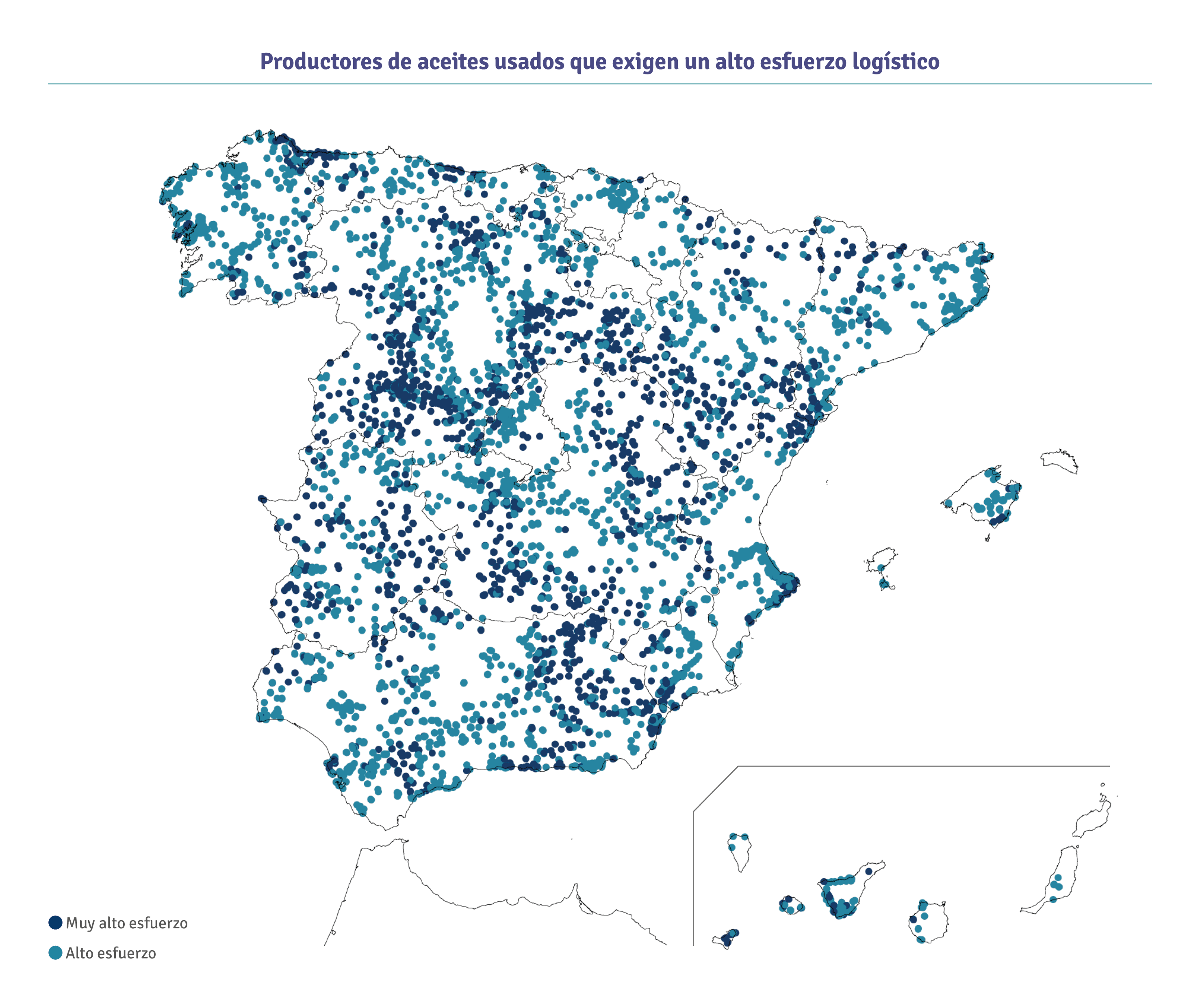 Based on this, the report gives an overview of the logistical complexity of collecting used oil annually from almost 70,000 collection points across the country, 20% of which require travelling long distances to collect small volumes of waste. A context in which only the application of extended producer responsibility (EPR), with the financing that this implies, can ensure the proper management of waste generated in any corner of the country.