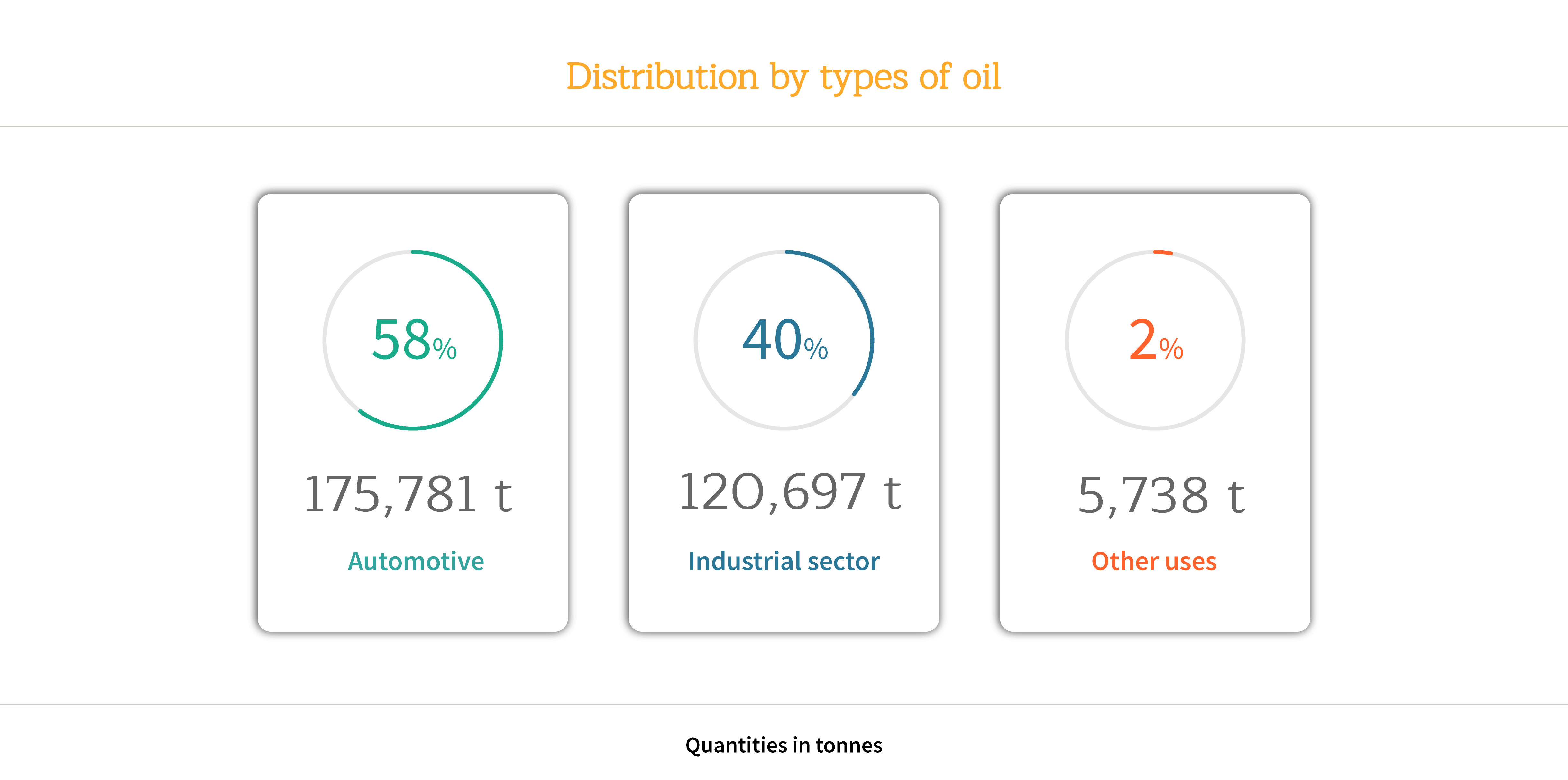 Finally, 5,738 t of oils destined for other uses were marketed, such as oils for small tools, multipurpose aerosols, compressors or chain lubrication.