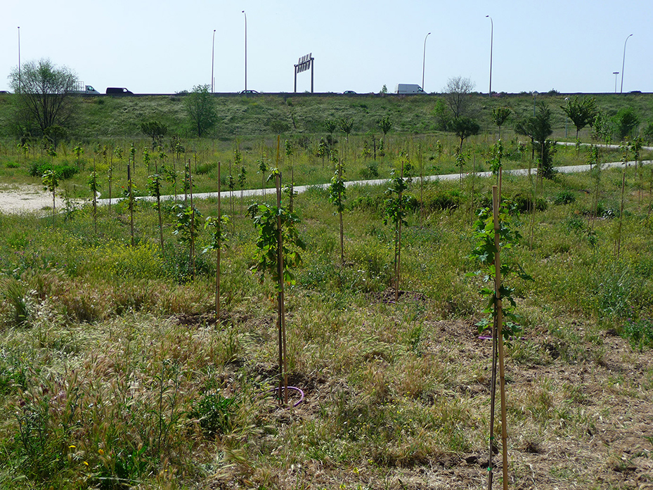 El Bosque SIGAUS alberga 800 unidades de pino carrasco y 200 unidades de arce blanco, en una zona verde de 33.000 m2 de superficie, situada en las proximidades del Centro Comercial Plaza Norte 2 y junto al lateral (sentido entrada a Madrid) del kilómetro 17,7 de la carretera A-1.