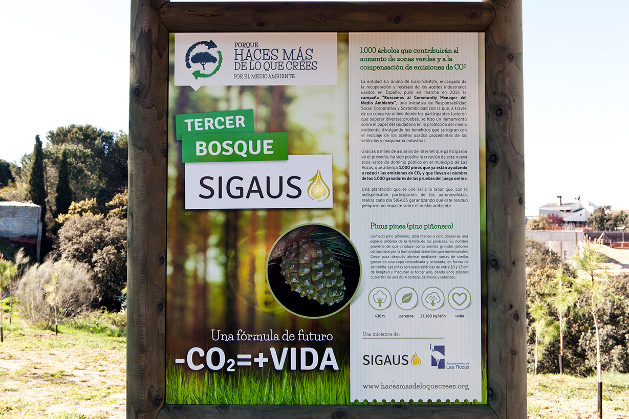 Un proyecto que fue posible gracias a los miles de usuarios que participaron en la campaña de comunicación online “Buscamos al Community Manager del Medio Ambiente”, una iniciativa con la que además de seguir plantando árboles, lanzamos un nuevo reto a los usuarios: convertirse en Community Manager del Medio Ambiente en SIGAUS sumándose a la difusión del cuidado del medio ambiente a través de la recuperación y reciclaje de los aceites industriales usados.