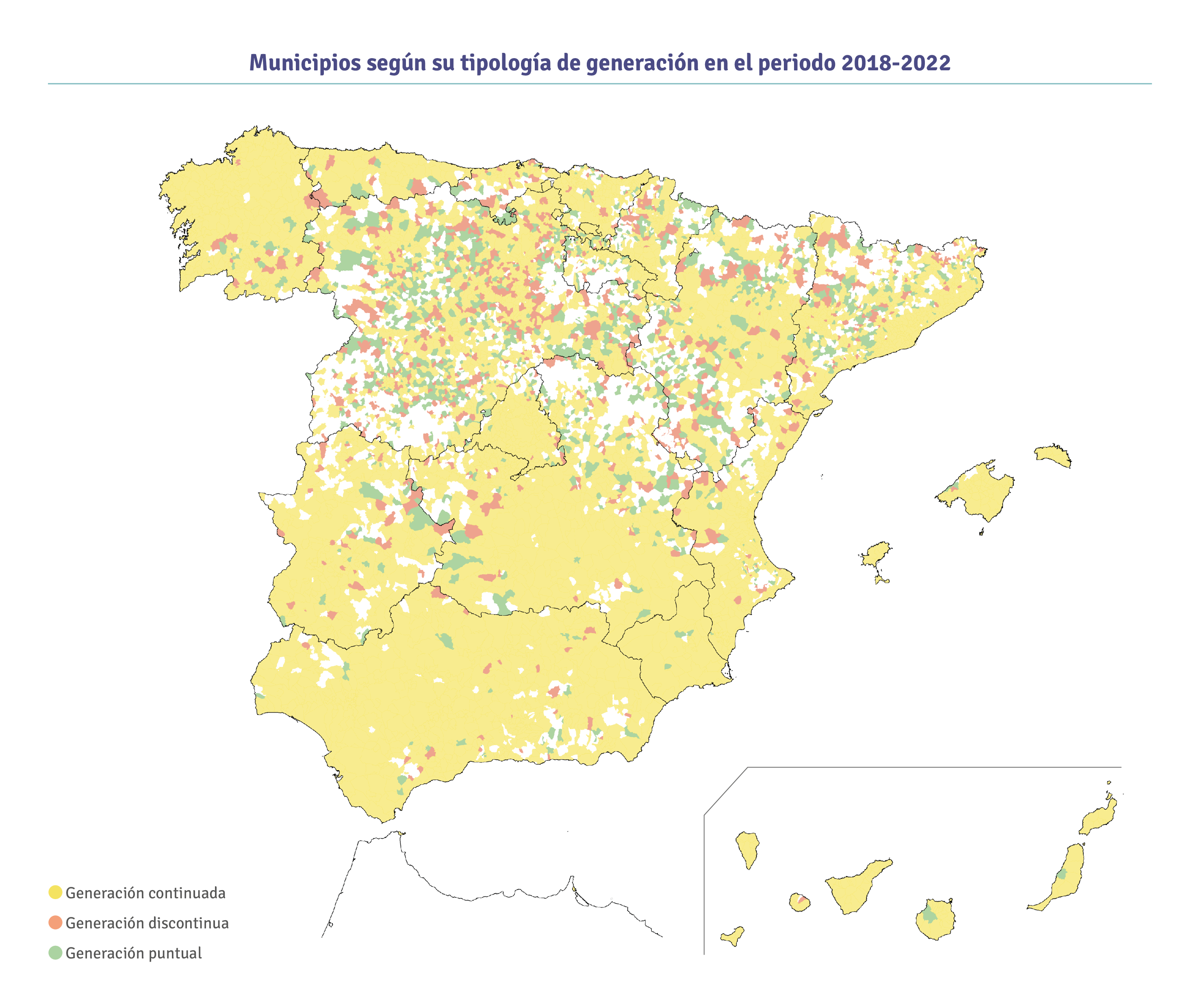 - Generación intermitente. En un análisis conjunto de los últimos 5 años (2018-2022) hasta 5.820 municipios distintos generaron aceites usados. De ellos, 4.050 –que agrupan al 97% de la población– lo hicieron regularmente mientras que otros 1.800 –que agrupan a un 1,5% de los españoles– lo hicieron de forma más esporádica, aunque igualmente atendida y registrada por SIGAUS.