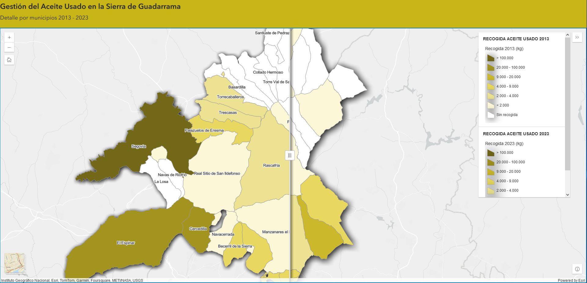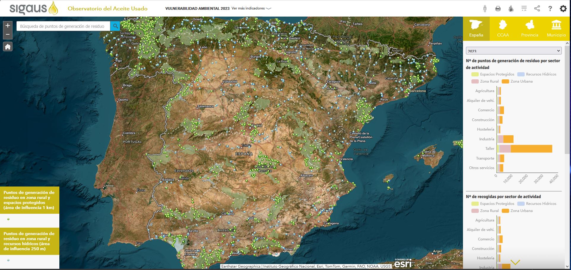SIGAUS utiliza la tecnología geoespacial de Esri para monitorizar la gestión del aceite usado en España mediante el desarrollo de un observatorio digital. Además de la trazabilidad del aceite usado en todo el territorio, la entidad ha elaborado un estudio sobre esta gestión como indicador de desarrollo local en el caso de los municipios del Parque Nacional de Guadarrama.